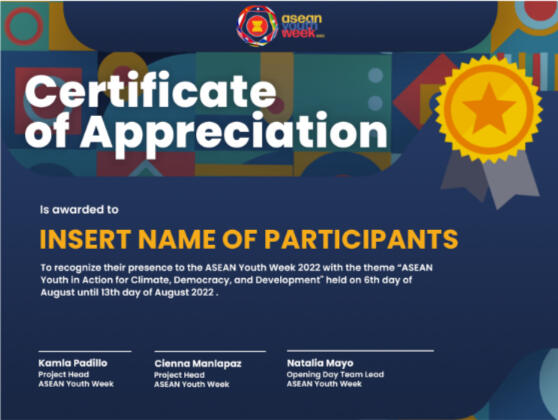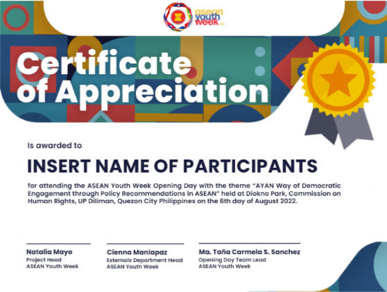 The ASEAN Youth Week (AYW) 2022 celebrates the ASEAN community through a week of advocacy-based initiatives by the ASEAN Youth Advocates Network (AYAN) this August 6-13.The ASEAN Youth Week holds projects and programs revolving around our 4 core pillars (democratic engagement, global citizenship education, climate alliance, community building and well-being) for the ten (10) ASEAN countries.